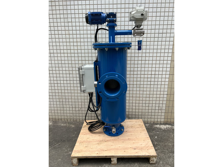 DS系列电动刷式过滤器是一种全自动清洗过滤器,在过滤器滤网内安装一套刷子,刷子由电机带动旋转,在过滤器端盖上安装一个电磁排污阀。清洗时,来自压差开关的信号传给控制盘,控制盘打开排污阀同时启动电机,带动刷子旋转刷掉污物杂质,在水力的作用下,通过排污阀排出过滤器。清洗无需断流。